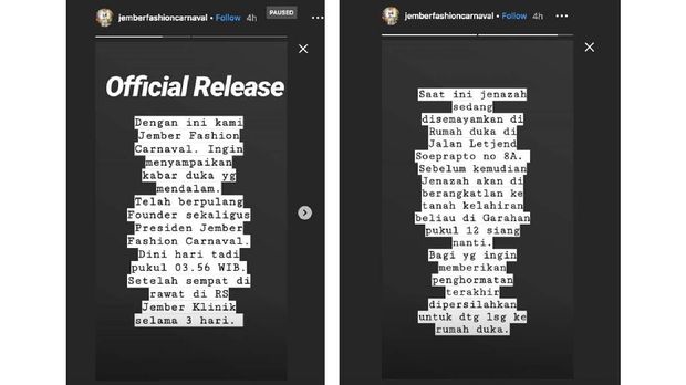 Foto: Screenshot via Instagram/@Jember Fashion Carnaval