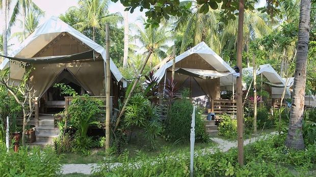 Di sebelah barat daya Pulau Gili Trawangan, Nusa Tenggara Barat, ada sebuah resor yang menawarkan penginapan unik berkonsep glamping dan tetap dekat dengan alam.