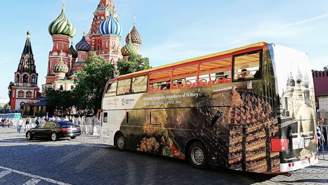 Dua unit bus wisata bergambar destinasi pariwisata Bali dan Borobudur dengan logo 'Wonderful Indonesia' dan 'Asian Games 2018' telah mengelilingi Moskow sejak 1 Juni hingga 20 Juni 2018.Kemenpar juga melakukan promosi 'Wonderful Indonesia' pada dua papan iklan digital di kawasan Novie Arbat dan Yerevan Plaza di Moskow sejak 16 Juni hingga 15 Juli 2018.