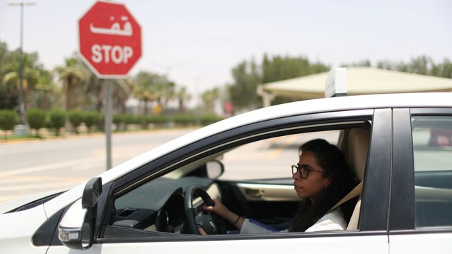 Selain Maria, ada juga Amira Abdulgader yang mengungkapkan dirinya ingin duduk di belakang kemudi, sebagai seseorang yang memegang kendali, dan bisa memberikan tumpangan ke ibunya di sampingnya. Suasana di Saudi Aramco Driving Center di Dhahran, Arab Saudi. (REUTERS/Ahmed Jadallah)
