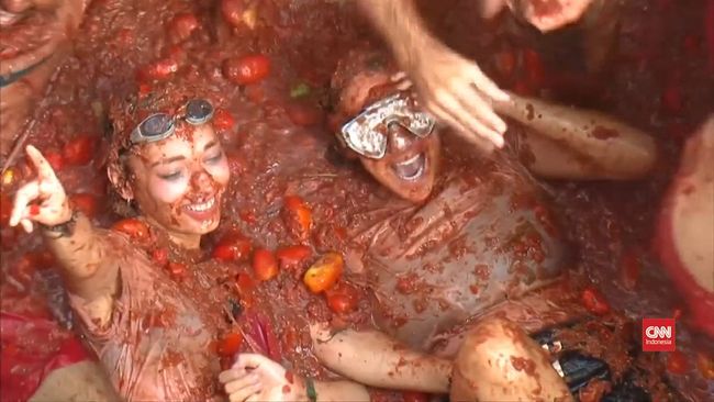 Jakarta, CNN Indonesia -- Ribuan orang bersuka ria melemparkan sekitar 145 ton tomat satu sama lain pada Rabu (29/8) dalam festival tahunan Tomatina di kota Bunol, Spanyol, 38 kilometer sebelah barat Valencia. Baca Kelanjutan VIDEO: Aksi Lempar Tomat Massal di Spanyol : https://ift.tt/2PQ4A2PBagikan Berita Ini