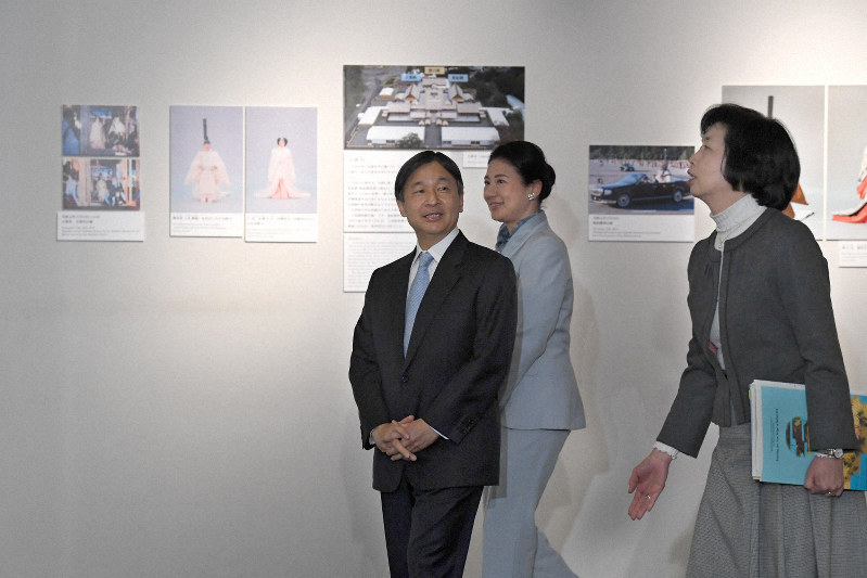 即位儀式のために作られた屏風(びょうぶ)や銀製の置物が初めて一般公開されたほか、両陛下の卒業論文などゆかりの品々が展示されている。陛下は高校時代の書き初めを目にして「改めて見ると、ちょっと恥ずかしいですね」と話すなど、皇后雅子さまと言葉を交わしながら、懐かしそうに展示品に見入っていたという。